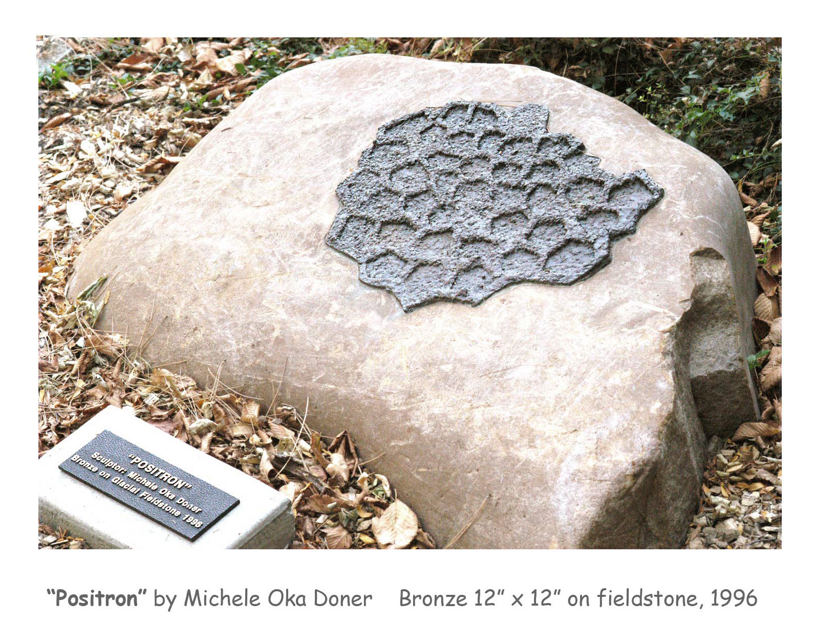 My work on positronium sculpture arose from a request to provide a complement to the 1996 bronze-on-fieldstone sculpture “Positron” by Michele Oka Doner that is installed by the front door of Randall Laboratory.