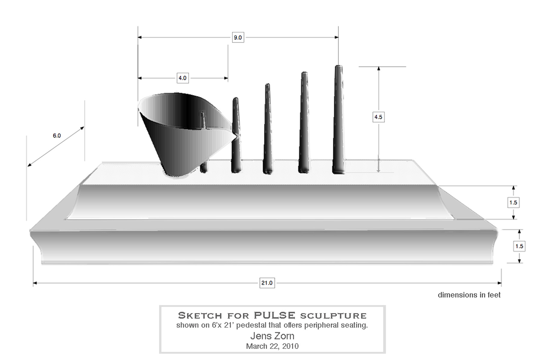 We chose a straight-sided cone. I first proposed a version that would be 9 feet tall and, overall, about 18 feet long