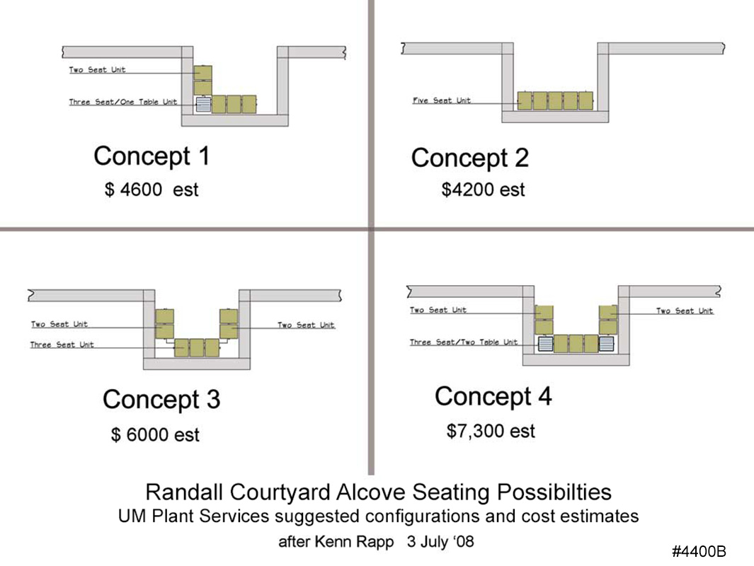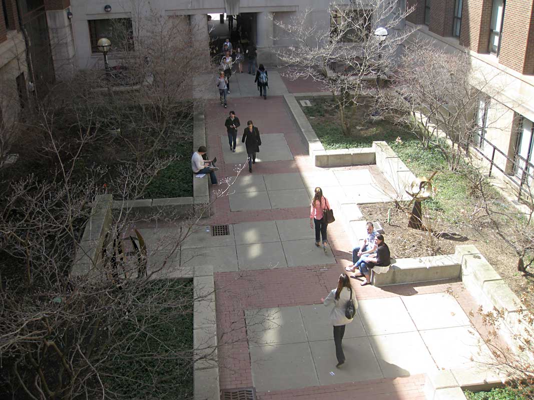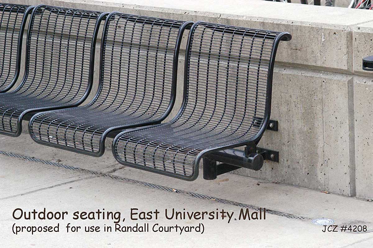 Adding seats to the courtyard between Randall Lab and West Hall would give people a pleasant place to relax, to converse, and to watch the passing parade as students move between classes.